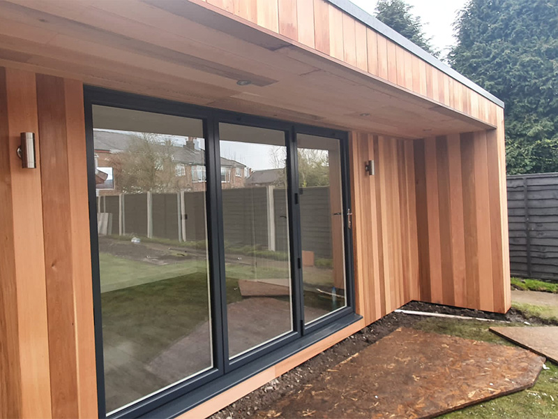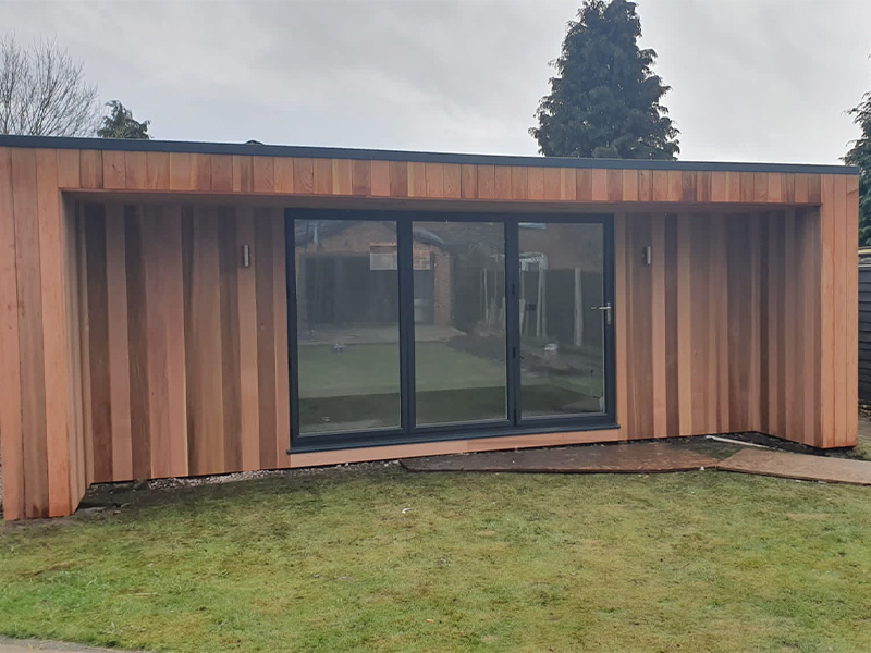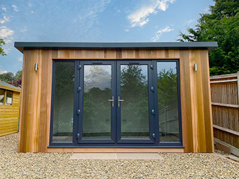 Glazing layouts are discussed carefully at the design stage to balance light, views, and acoustic control. Sanctum’s approach ensures each building feels bright and connected to the garden while maintaining the quiet required for music production or rehearsal.