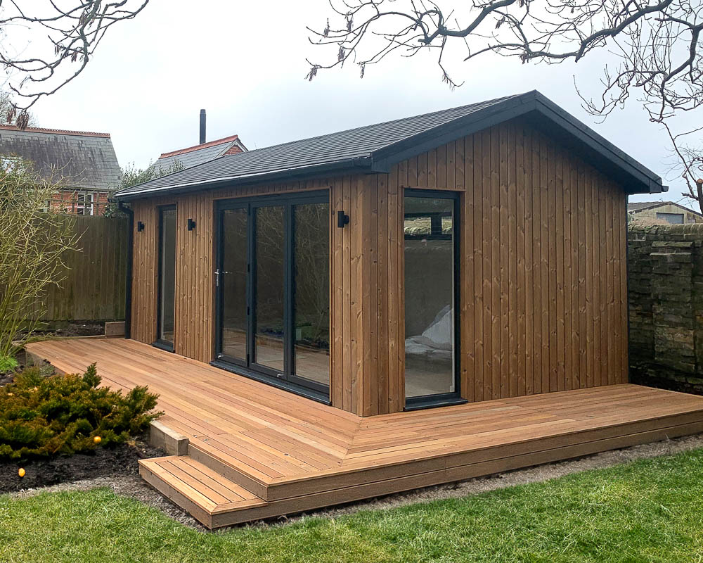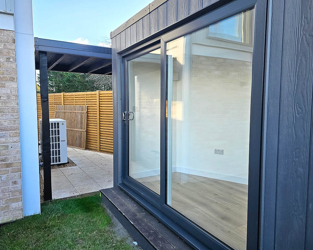 Studios are constructed around a robust insulated timber frame, combining traditional craftsmanship with modern insulation for year-round comfort. External finishes include a choice of timbers and composite claddings in different profiles and colours. Roof finishes vary by range, from sleek mono-pitched forms to fully tiled pitched roofs. Interiors are plastered and decorated as standard, with the option of OSB or plywood linings for practicality. Heating and cooling systems can be integrated for seasonal comfort.